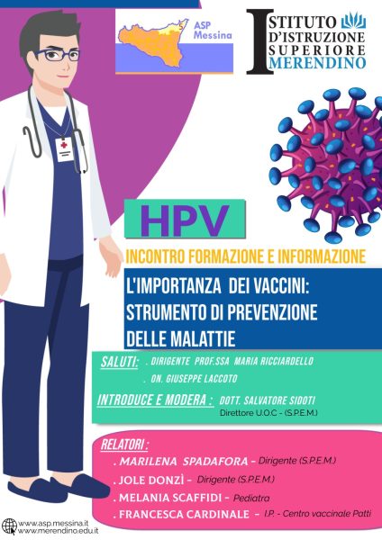 Si è svolto oggi mercoledì 17 maggio all’Istituto alberghiero Merendino, sede di Brolo, un incontro organizzato dall’Asp di Messina sul tema Hpv – formazione e informazione nell’ambito della campagna dell’azienda sanitaria provinciale su “L’importanza dei vaccini: strumento di prevenzione delle malattie”. Dopo i saluti della dirigente scolastica, Maria Ricciardello, ha introdotto e moderato l’evento il direttore dell’U.O.C. Dipartimento di Prevenzione dell’Asp di Messina Salvatore Sidoti.
