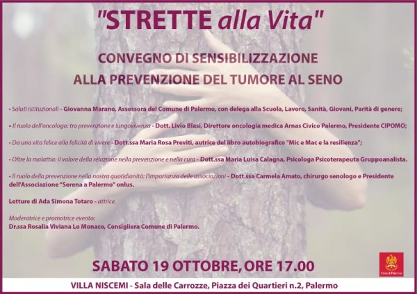 Nel mese dedicato alla prevenzione del tumore al seno, è stato organizzato un momento di incontro e riflessione, sabato 19 ottobre, alle ore 17.00, nella cornice istituzionale di Villa Niscemi a Palermo.