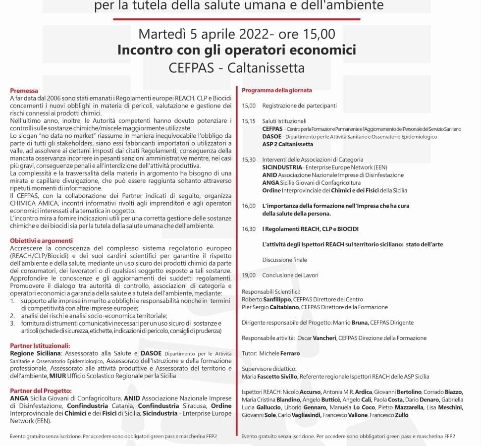 “Chimica Amica”: il 5 aprile al CEFPAS incontro con le imprese del nisseno Sarà il CEFPAS ad ospitare martedì 5 aprile alle ore 15.00 a Caltanissetta il quarto…